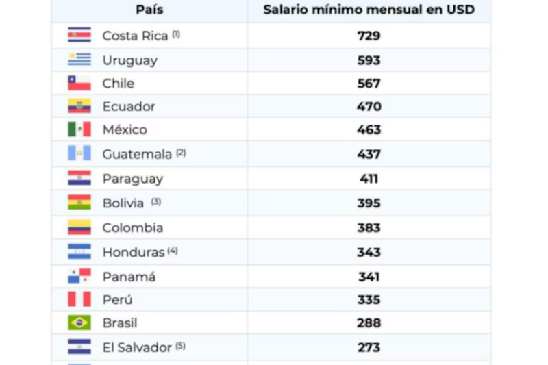 El Celag reveló que, actualizado a noviembre de 2025, el salario mínimo argentino es el más bajo de toda la región. Con apenas 225 dólares, se ubica en el fondo de la tabla, por debajo de Bolivia, Paraguay y muy lejos de Costa Rica, que lidera con 729 dólares.