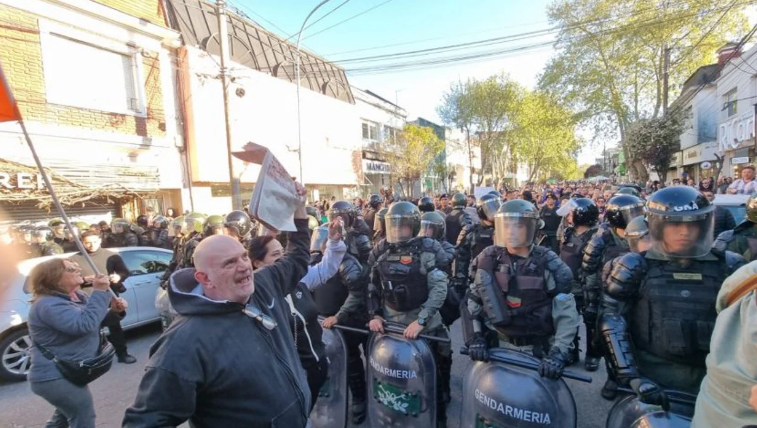 Para prevenir posibles enfrentamientos, la Policía Federal, la Gendarmería Nacional y la Prefectura reforzaron el operativo de seguridad en la zona de la caminata, que se realizó por la calle Avellaneda y fue seguida de cerca por los candidatos bonaerenses de La Libertad Avanza.