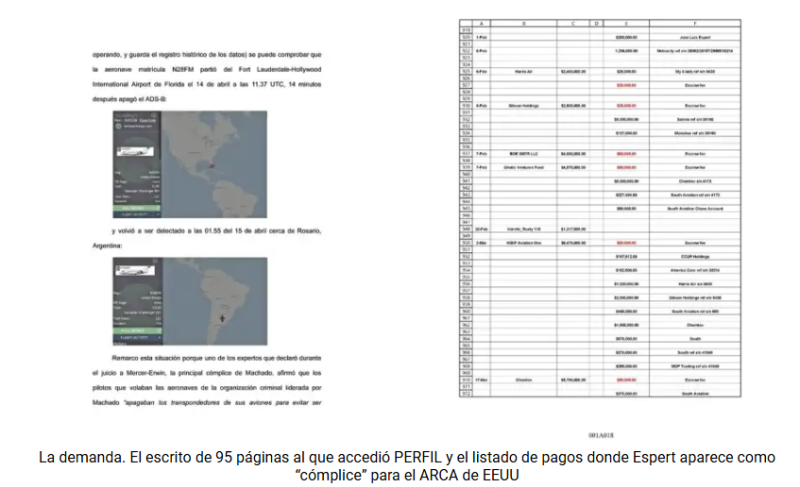 Los datos aportados en esta denuncia permiten comprender una trama que primero se experimentó en Centroamérica y que luego buscó ser reeditada en Argentina. El escrito reconstruye los vuelos realizados por los aviones de Machado entre Estados Unidos y Argentina, con una serie de conexiones temporales que llegan nuevamente a Espert.