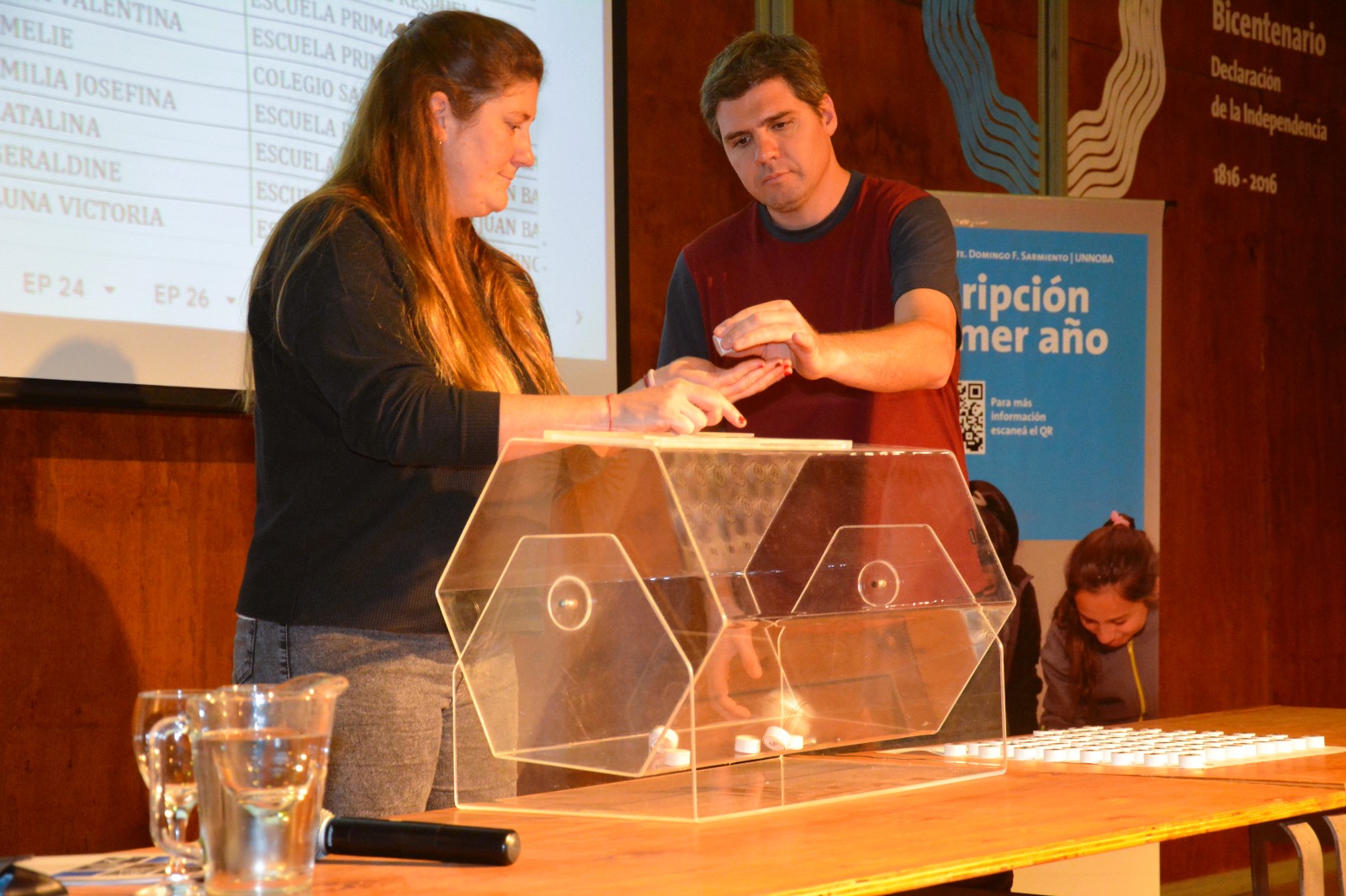 El sorteo lo condujo el coordinador académico de la escuela, Fernando Balbi, con la presencia de autoridades de la Universidad y familiares de los inscriptos. Se realizó en el Auditorio Bicentenario de la UNNOBA y se dividió en dos etapas: en la primera se sorteó un lugar por cada una de las 22 escuelas públicas de Junín en las que hubo inscriptos.