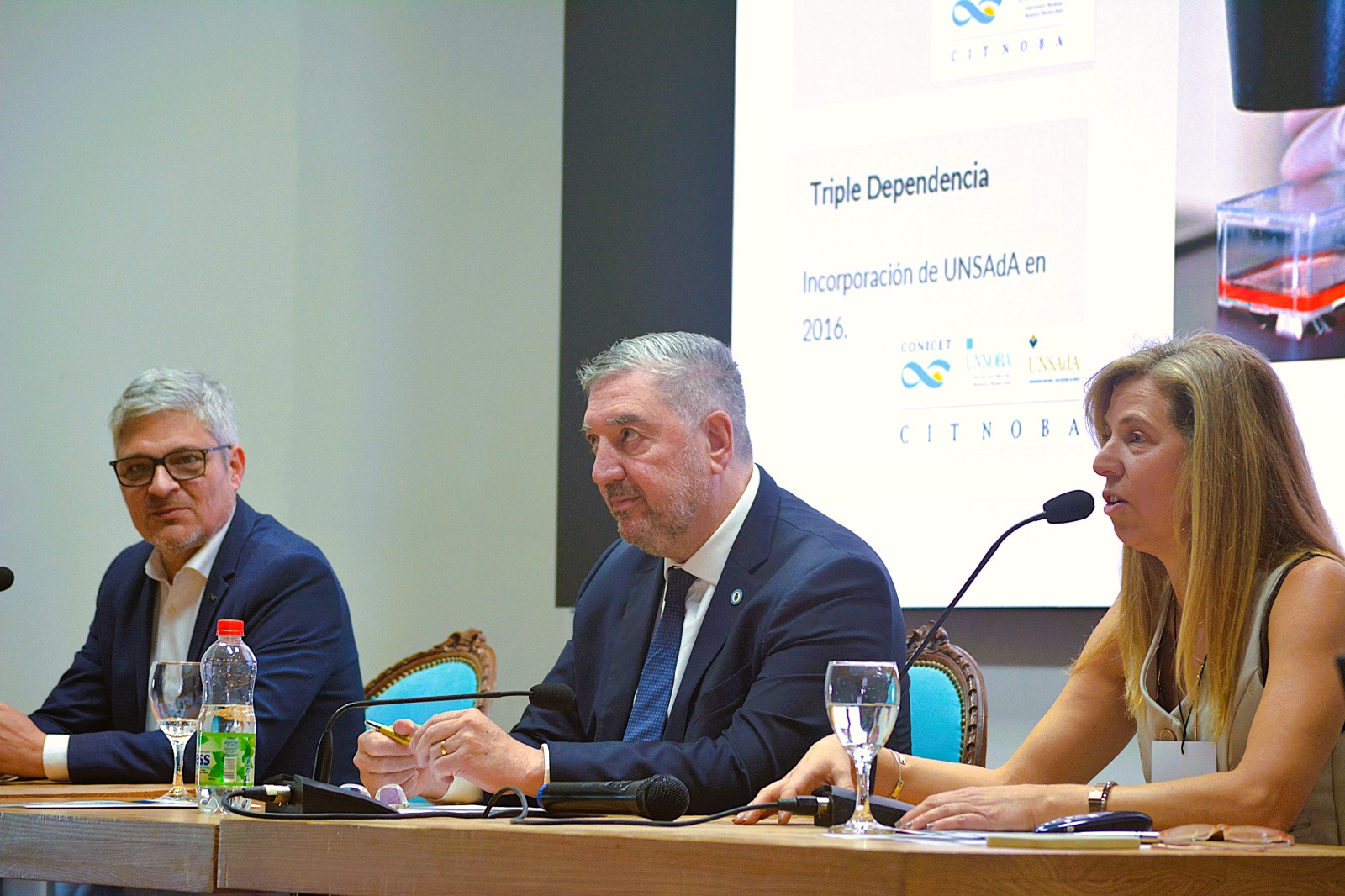 El rector de la UNNOBA, Guillermo Tamarit, subrayó que la flamante Unidad Ejecutora es un centro multidisciplinar e interinstitucional, ya que contempla distintas ramas de la ciencia y dos universidades. “Tiene un arraigo pertinente y virtuoso con la región, con los sectores económicos y con las agencias estatales. Este es un camino a preservar y desarrollar. Tenemos que sobreponernos a las dificultades que está atravesando la ciencia argentina, por los jóvenes y por el futuro. Nuestro país tiene el talento para liderar múltiples áreas de conocimiento tales como la energía, agronegocios, biotecnología”, consideró el doctor Tamarit en la Jornada de Jóvenes Investigadores.