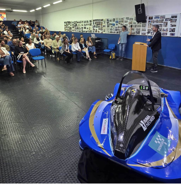 El martes por la tarde en el auditorio de la Escuela de Educación Secundaria Técnica (EEST) N°1 “Antonio Bermejo”, se llevó a cabo la presentación oficial del nuevo automóvil con el que la institución participará de una nueva edición del Desafío ECO 2025, que se realizará el 8 y 9 de noviembre en Concepción del Uruguay. El presidente del Concejo Deliberante, Juan Fiorini, destacó la importancia que tiene este proyecto para la educación y el crecimiento de los estudiantes y les recomendó que “aprovechen esta experiencia única para aprender y divertirse”.