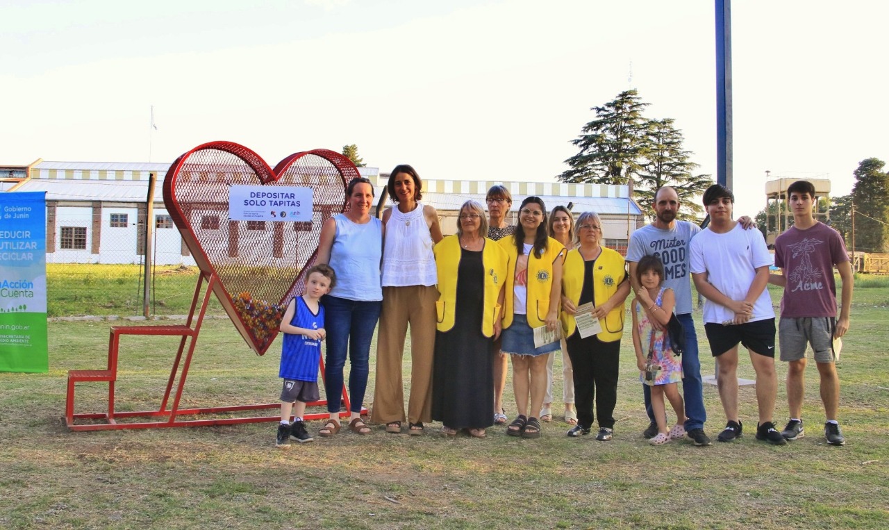 A los contenedores ya colocados en las plazas Yebrín y 9 de Julio, ahora se agregó otro en el Parque Lineal a la altura de Jean Jaures y Cabrera, gracias al trabajo coordinado entre el área de Medio Ambiente del Gobierno de Junín, el Club de Leones que impulsó el proyecto y alumnos de la Escuela de Educación Secundaria Técnica (EEST) N°1 “Antonio Bermejo” que realizaron el diseño de los mismos. La idea es llegar a la mayor cantidad de espacios públicos con estos corazones para que los vecinos dejen las tapas de gaseosas y bebidas, con el fin de colaborar con el Hospital Interzonal General de Agudos (HIGA) “Abraham Piñeyro”.